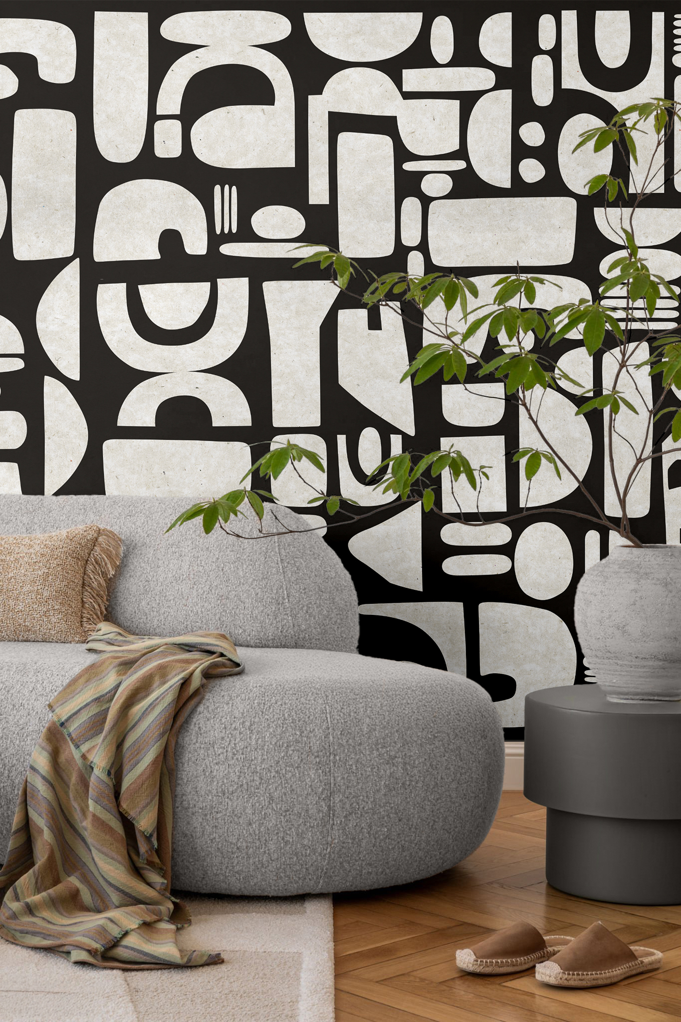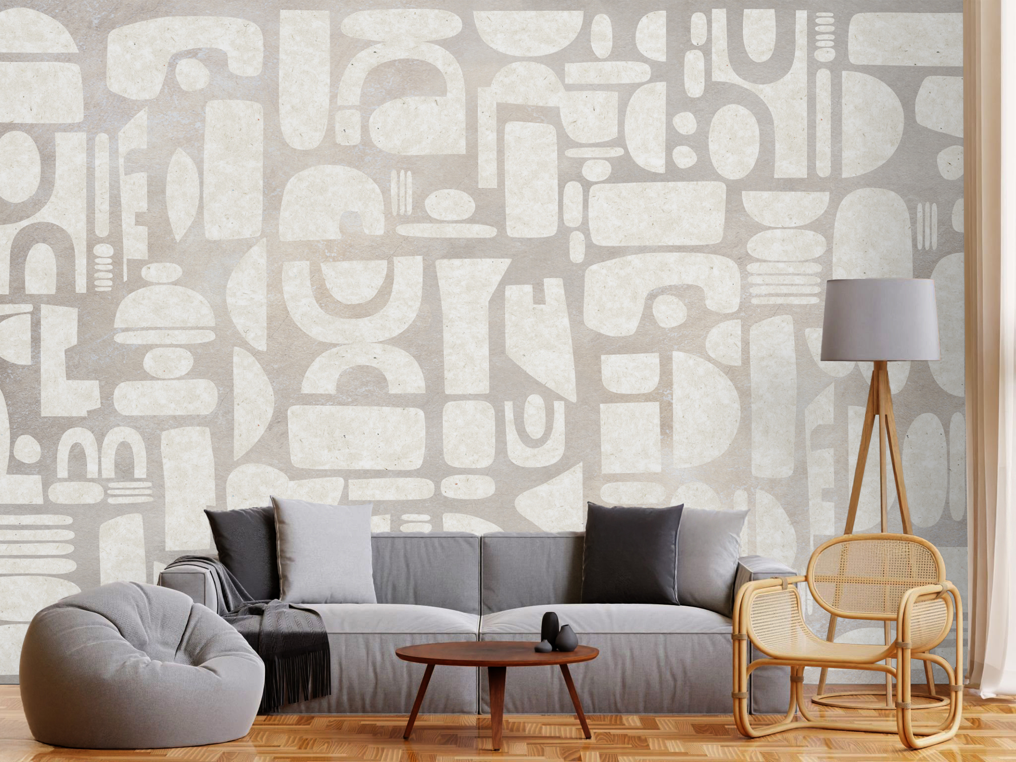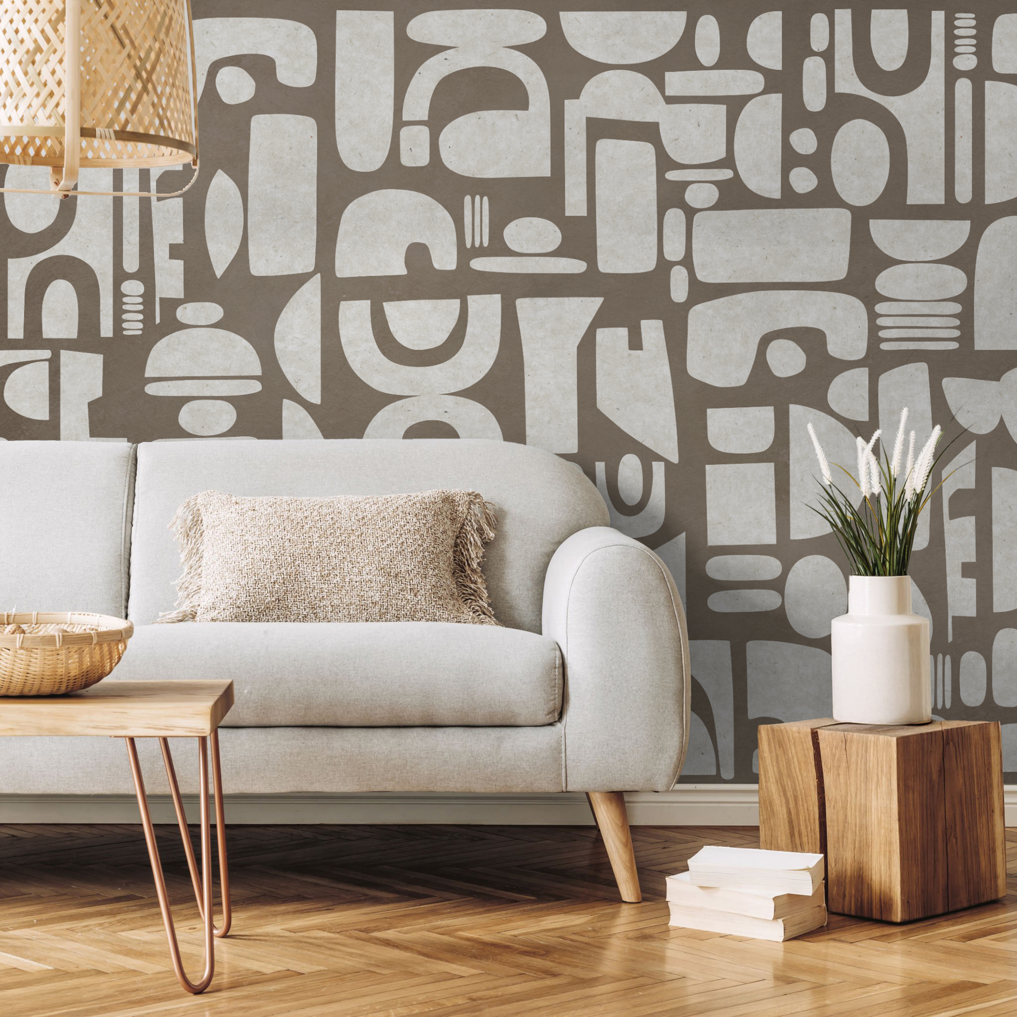 Abstrakcyjne kształty nawiązują do dawnych symboli i układów geometrycznych, pozostając jednocześnie współczesne i uniwersalne. Dzięki temu wzór harmonijnie współgra z różnymi stylami – od minimalistycznych po bardziej eklektyczne aranżacje.