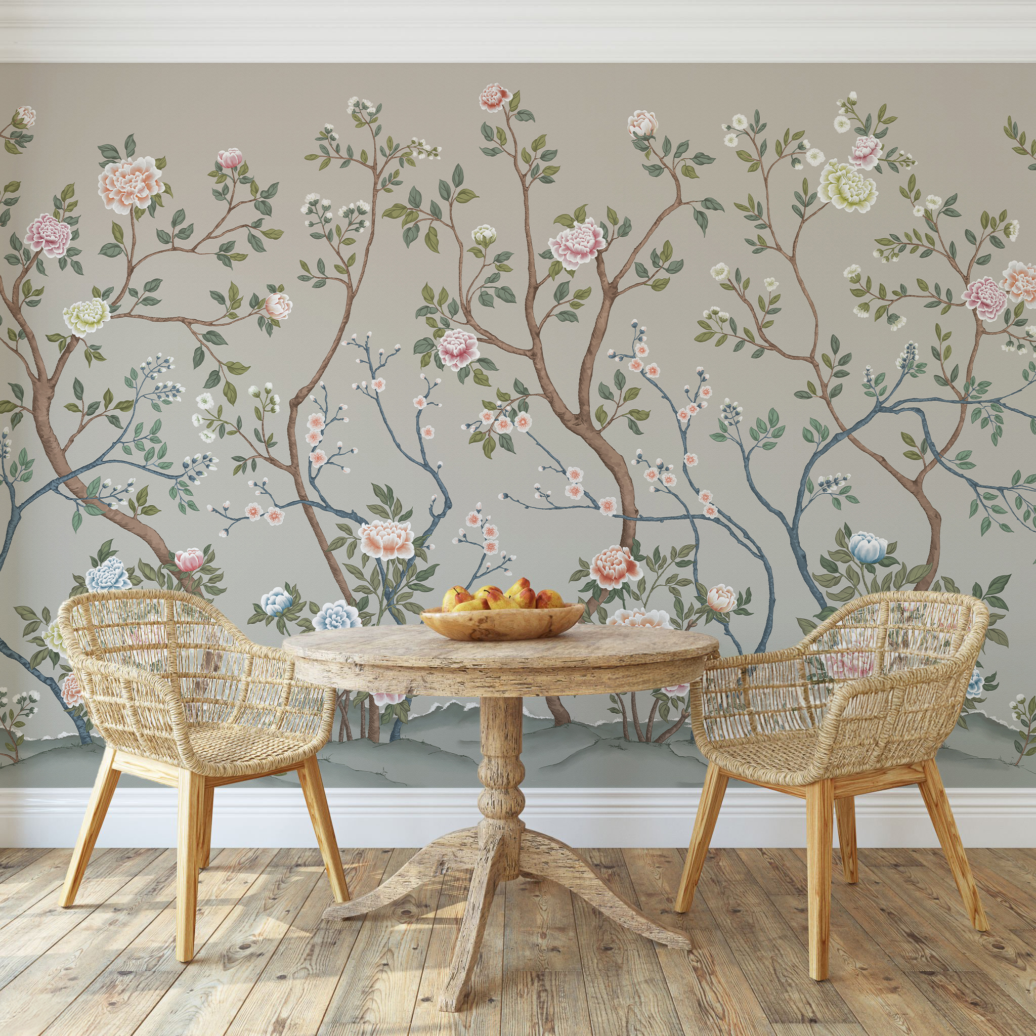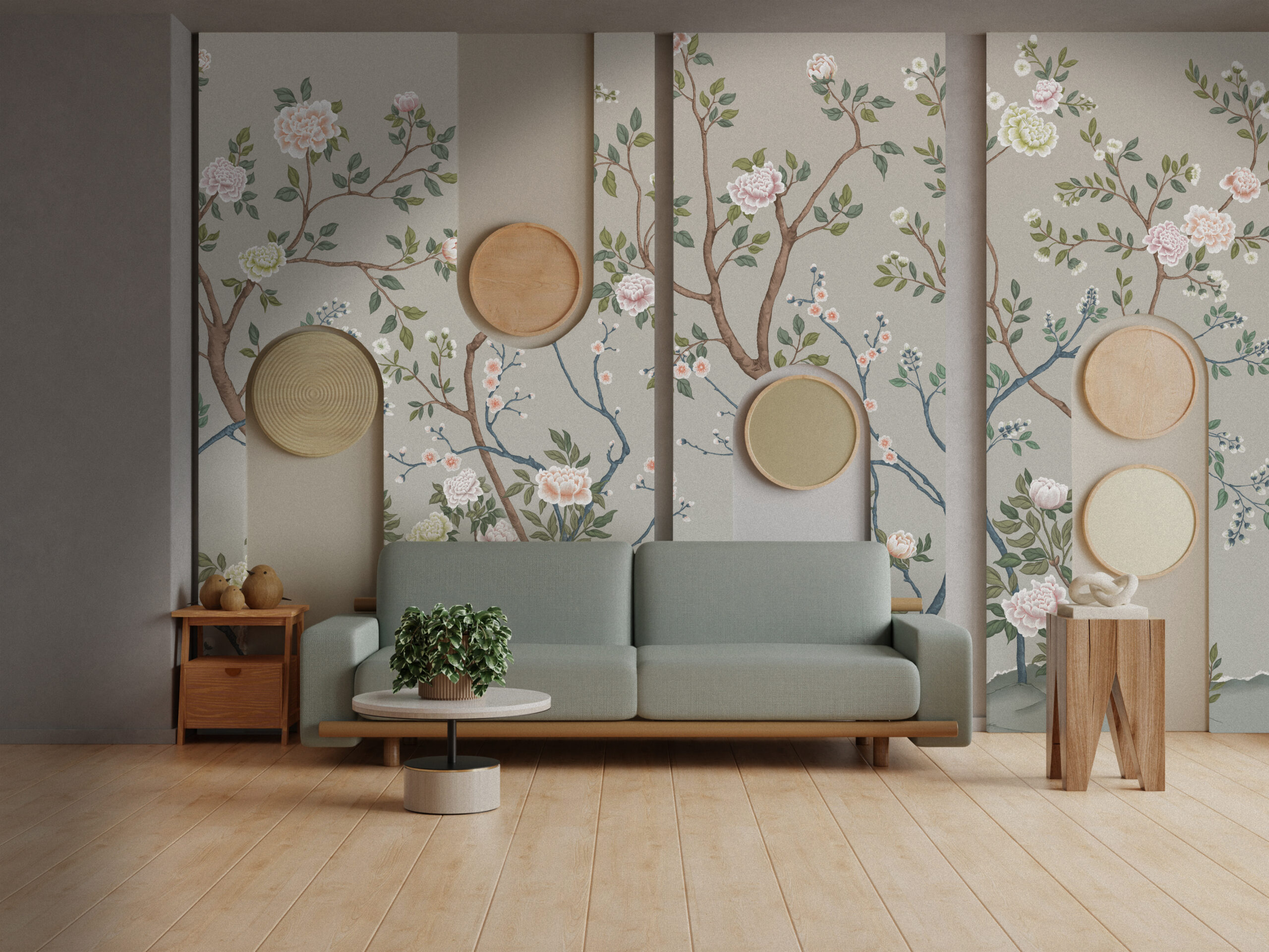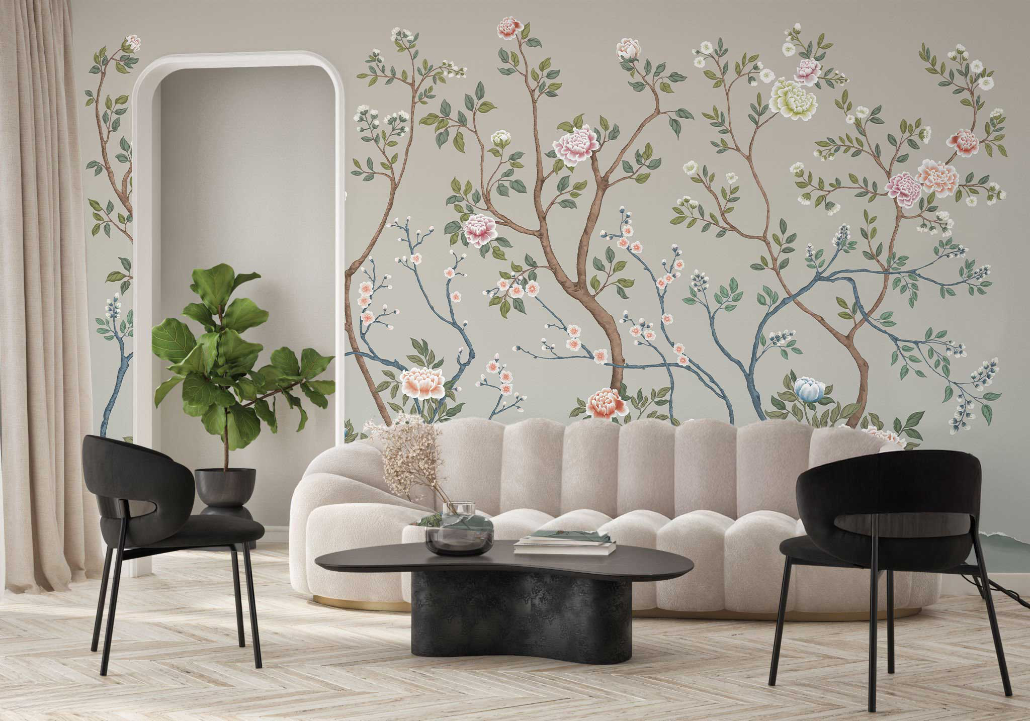 Azumi to tapeta inspirowana naturą i spokojem ogrodu. Misternie narysowane gałązki i kwiaty tworzą spokojną, harmonijną kompozycję. Wzór ma w sobie coś z ilustracji – jest lekki, ale pełen szczegółów.