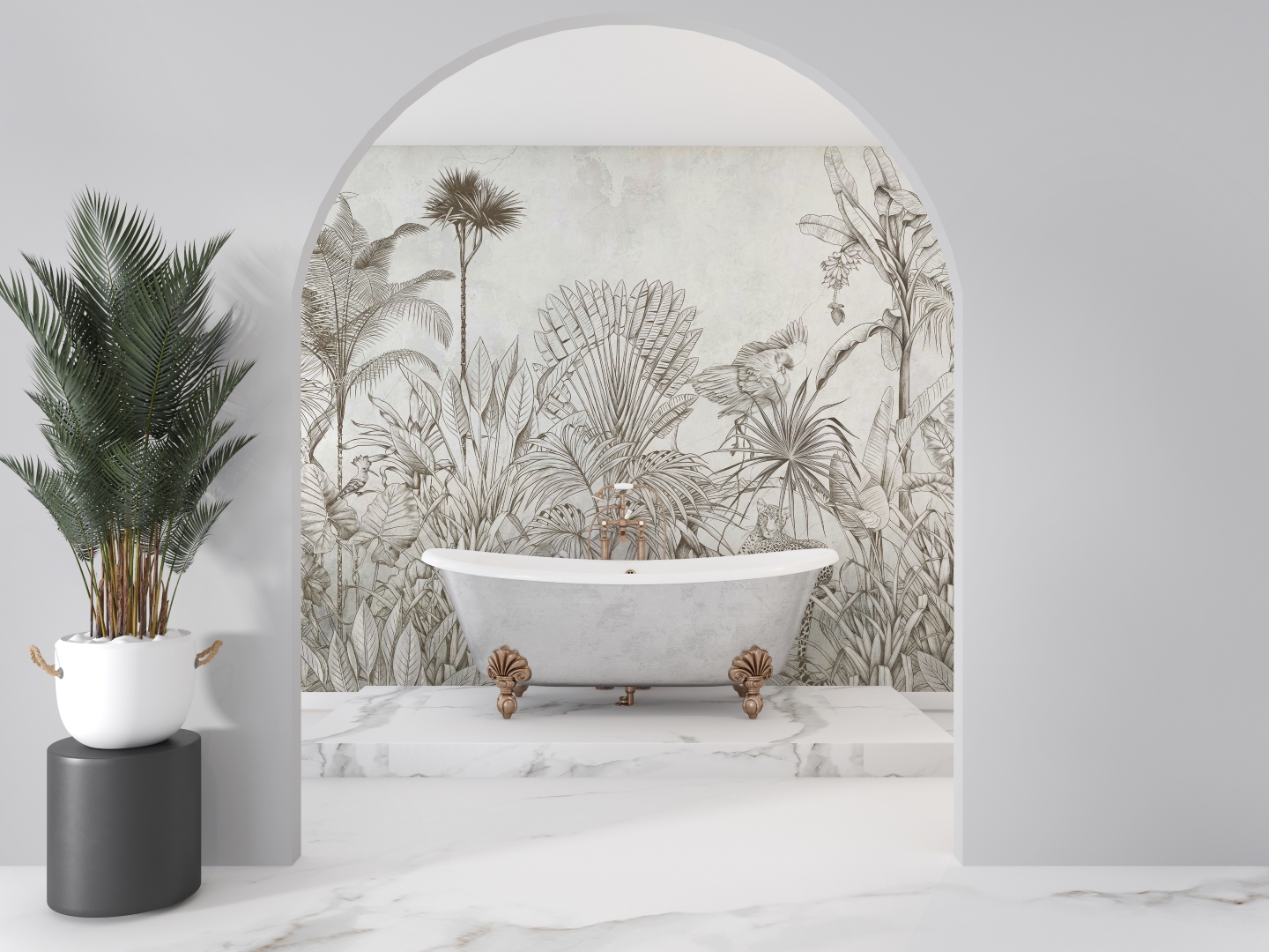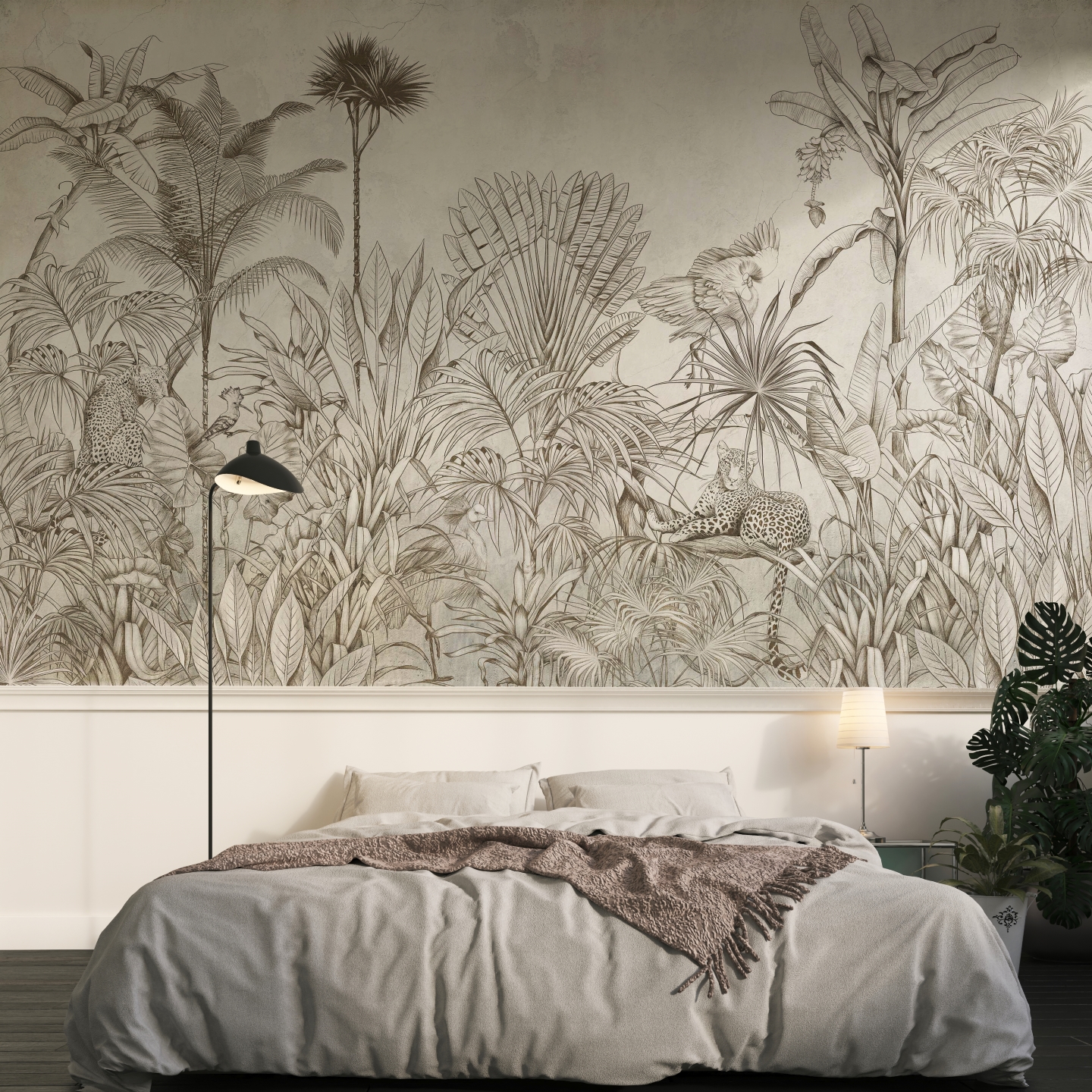 Tapeta Liana to prawdziwa podróż w sam środek egzotycznej dżungli. Subtelne szkice bujnej roślinności i dzikich zwierząt przenoszą nas do świata pełnego natury, spokoju i inspiracji. Delikatna technika rysunku sprawia, że kompozycja nabiera elegancji, jednocześnie podkreślając autentyczność detali. Ta tapeta to nie tylko dekoracja – to opowieść o harmonii między człowiekiem a przyrodą, idealna do wnętrz, które potrzebują naturalnej energii i oryginalnego charakteru.