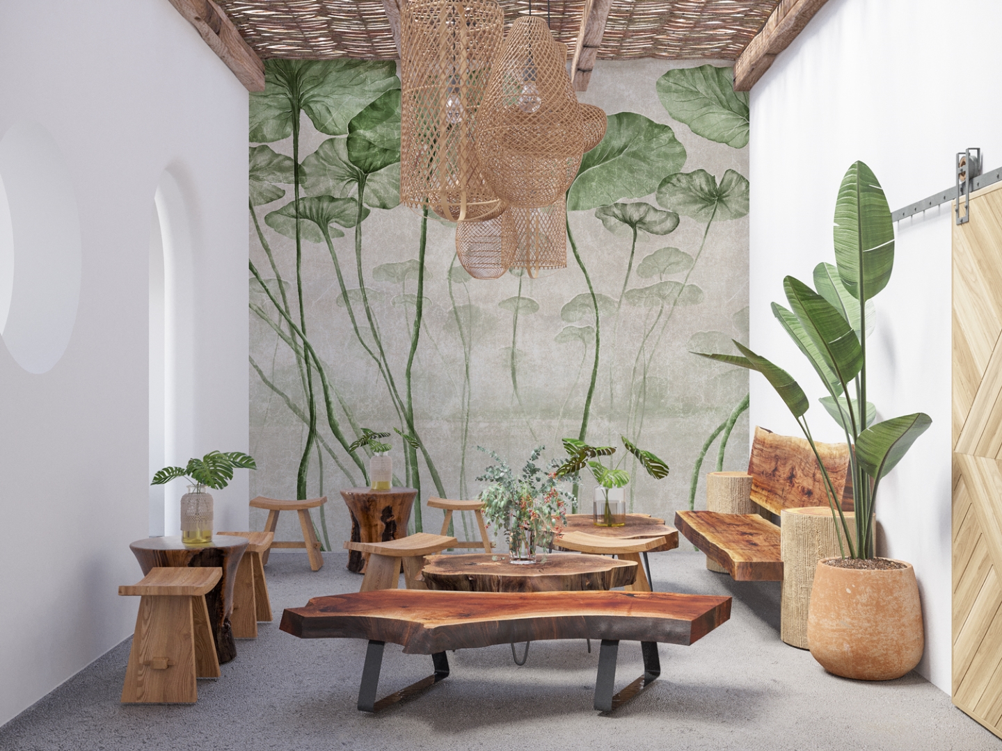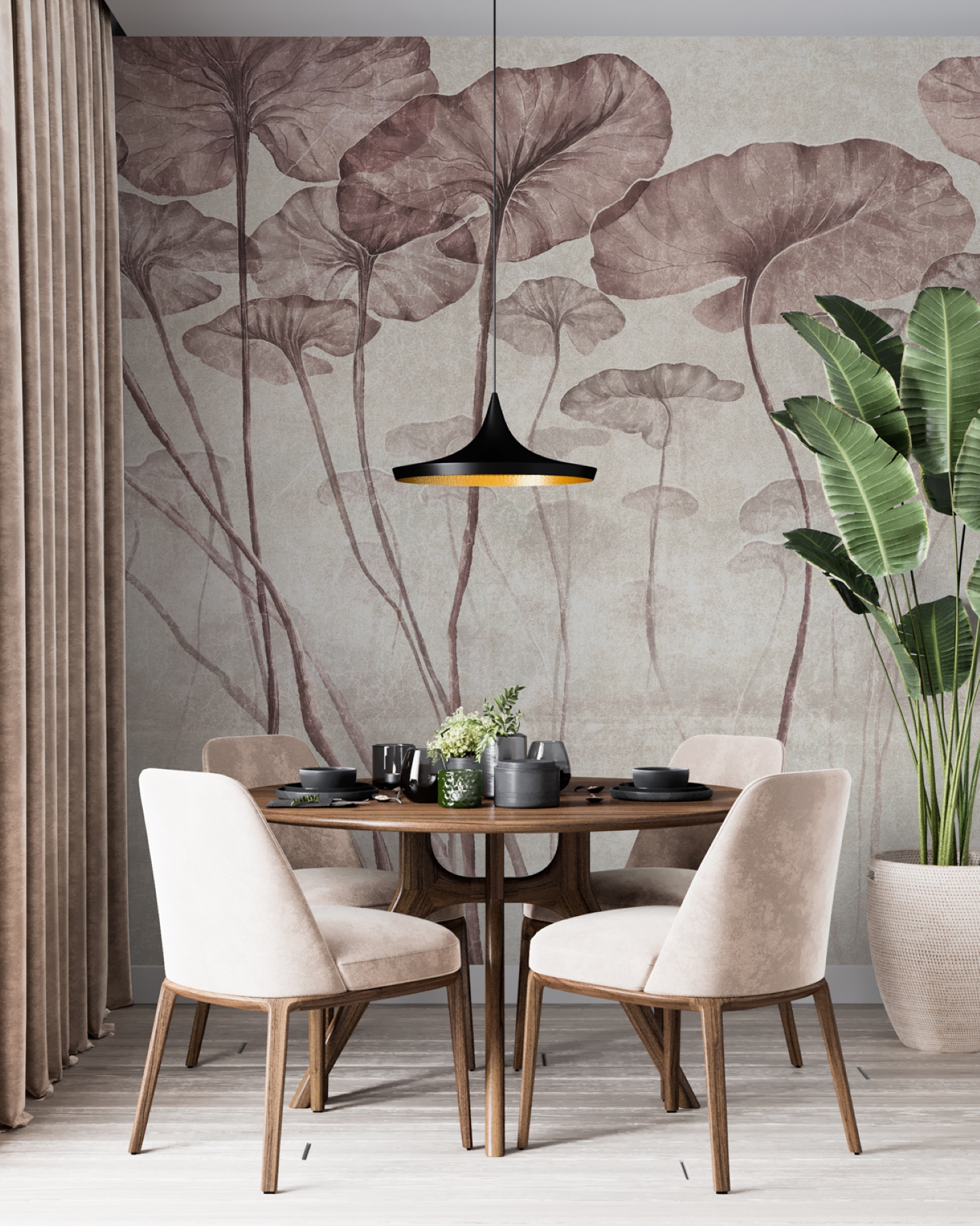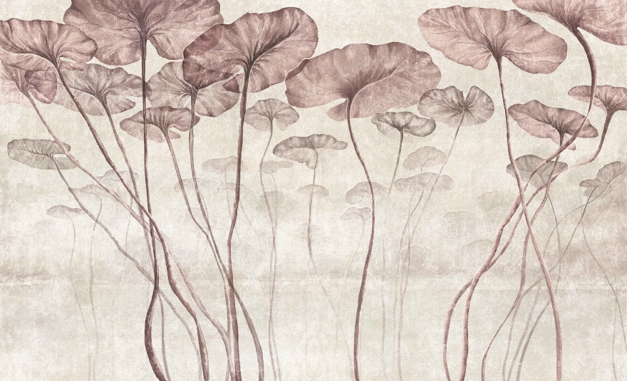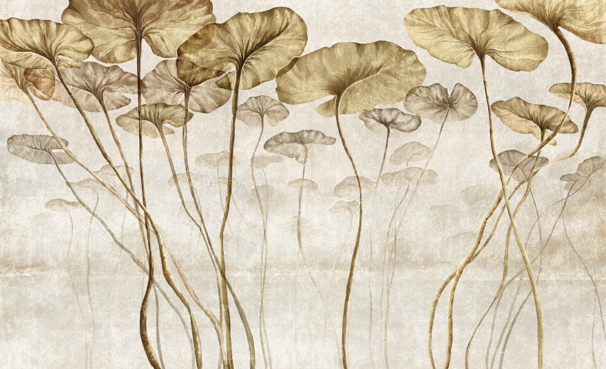 Motyw lilii na tej tapecie przedstawia delikatny taniec liści, które wydają się lekko unosić w powietrzu. Subtelne przejścia kolorów i finezyjne detale tworzą eteryczną atmosferę, wprowadzając spokój i harmonię do wnętrza. Ten wzór idealnie pasuje zarówno do minimalistycznych, jak i klasycznych aranżacji.