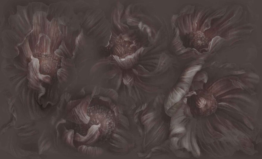 Zgaszone kwiaty tonące w półmroku, zmysłowość ukryta w cieniu. Dla wnętrz, które nie muszą być głośne, by robić wrażenie.