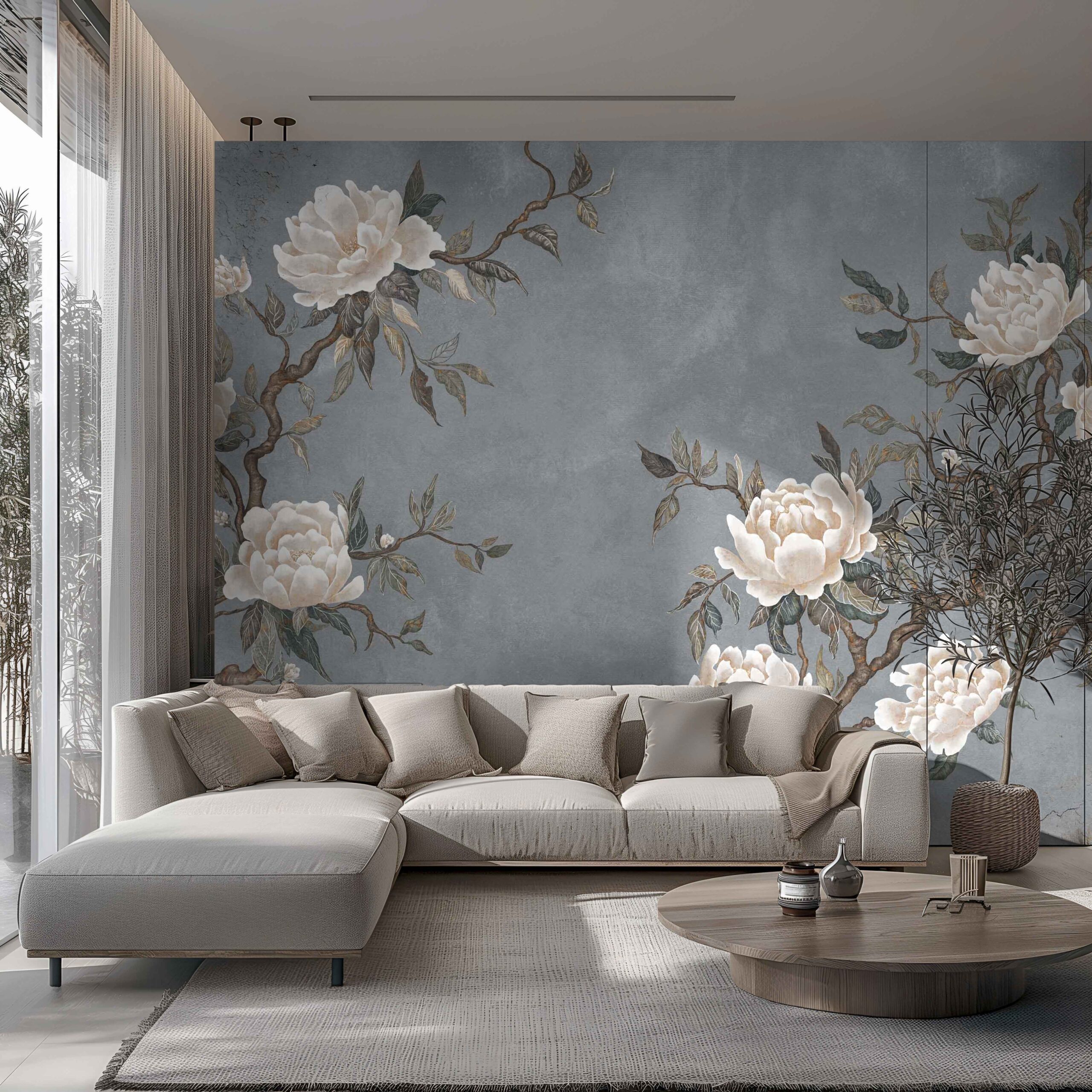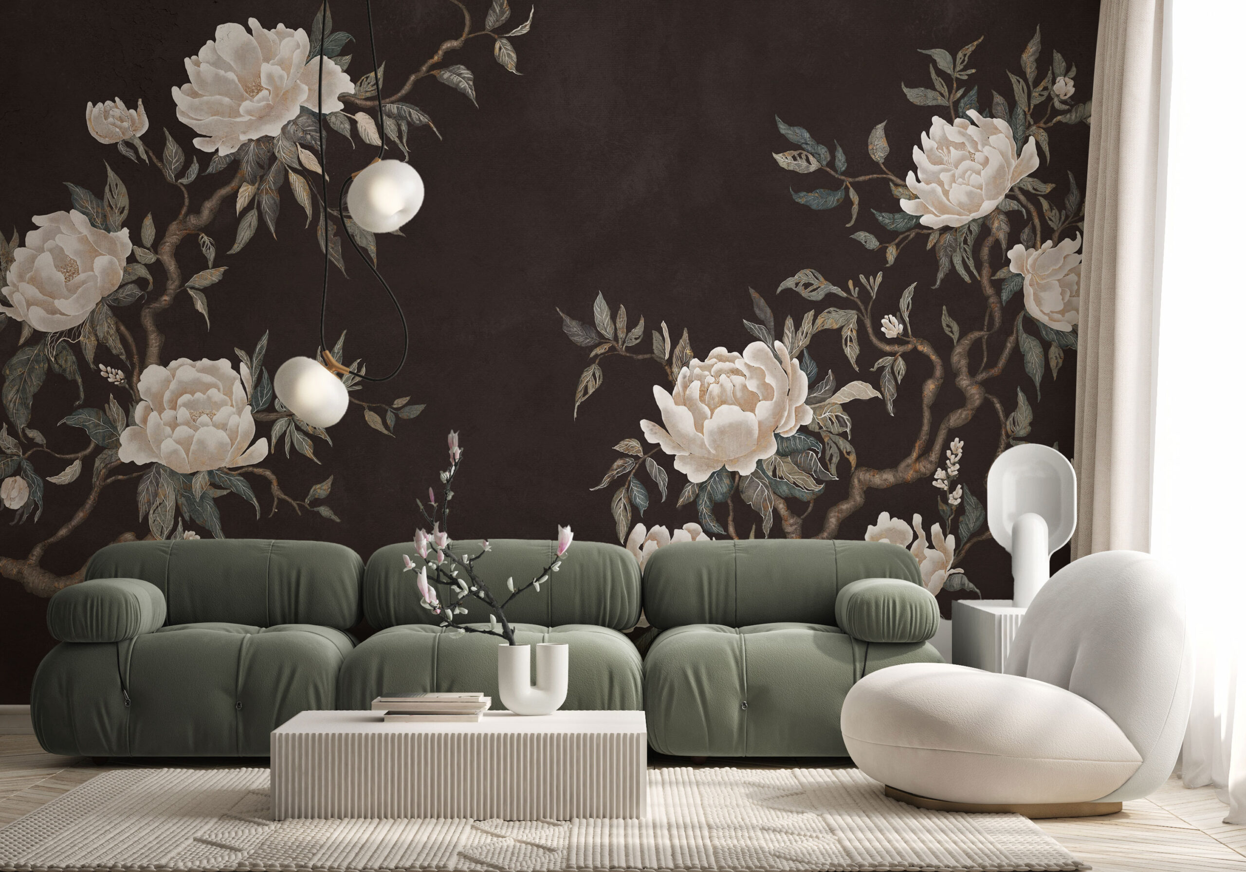 Rozkwitające piwonie w dużej skali przyciągają wzrok i tworzą atmosferę lekkości, kobiecej siły i naturalnego piękna.