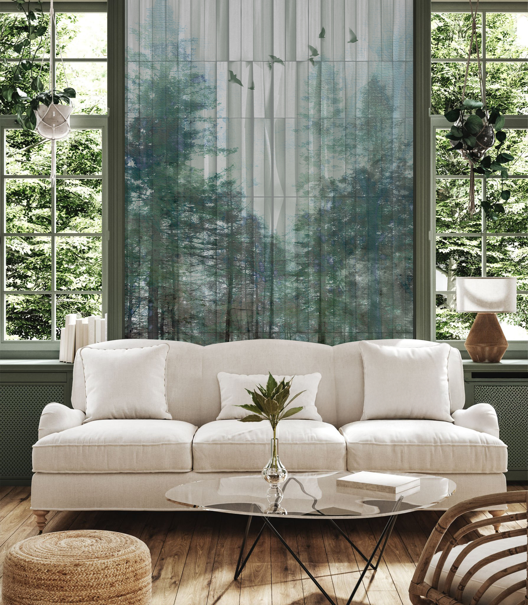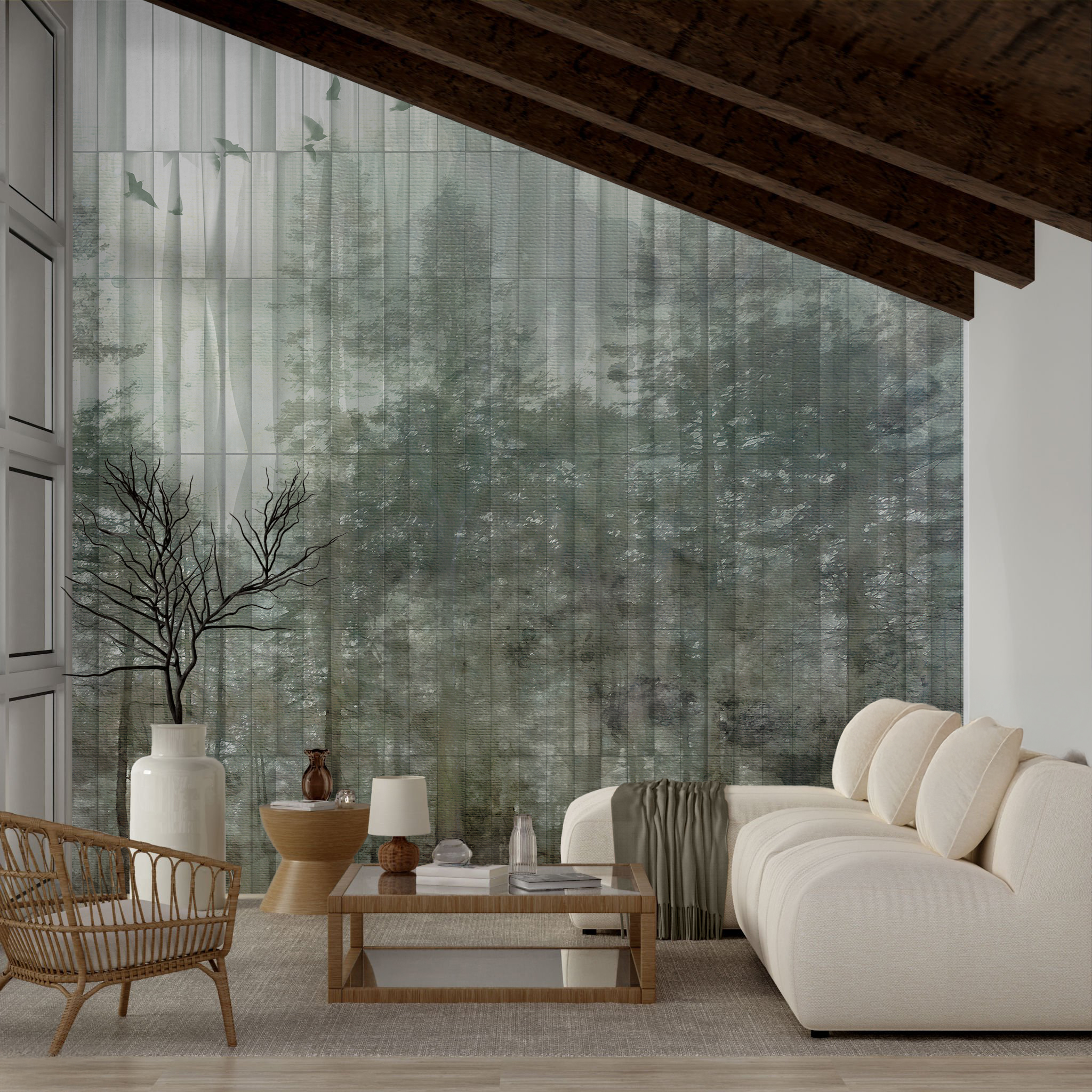 Zanurz się w atmosferę mglistych poranków w sercu dzikiej przyrody. Tapeta Taiga to opowieść o lesie pełnym ciszy, światła i subtelnych emocji. Przefiltrowane przez korony drzew światło tworzy głęboką, kojącą kompozycję, która wprowadza do wnętrza harmonię i kontemplację.