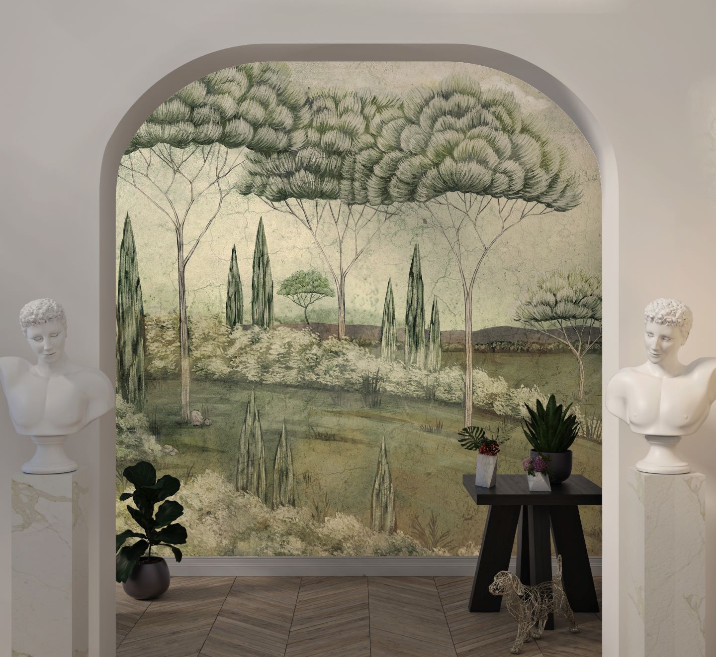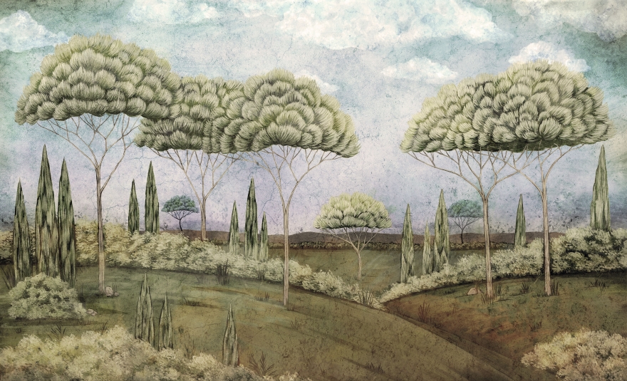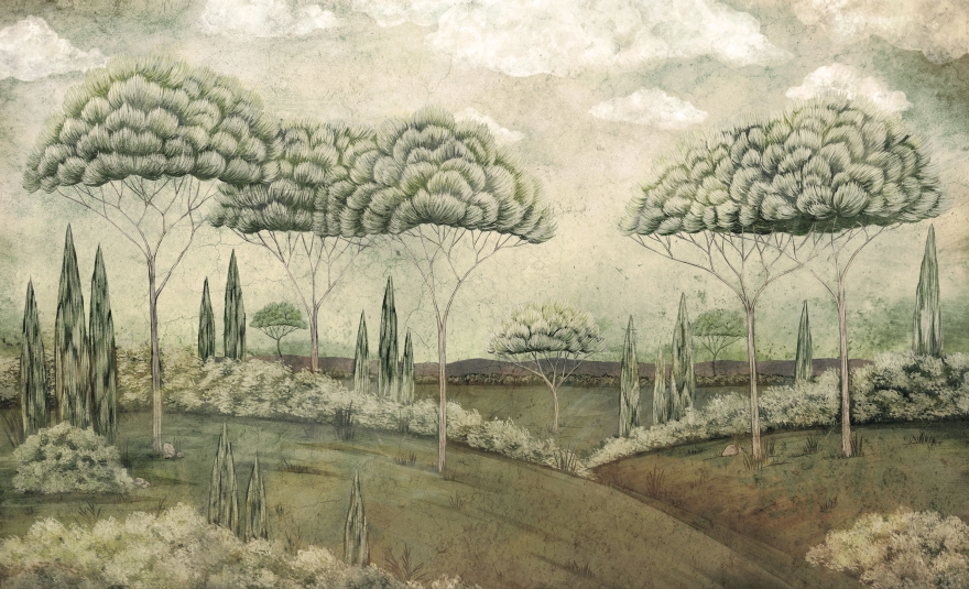 Wzór „Vista” wprowadza do wnętrza spokojny urok malarskiego pejzażu. Inspirowana klasycznym krajobrazem, tapeta tworzy atmosferę ciszy i odprężenia, przywołując sielskie widoki natury. Stonowane kolory i delikatne detale sprawiają, że jest to idealna dekoracja do przestrzeni, które potrzebują odrobiny elegancji i wyciszenia.